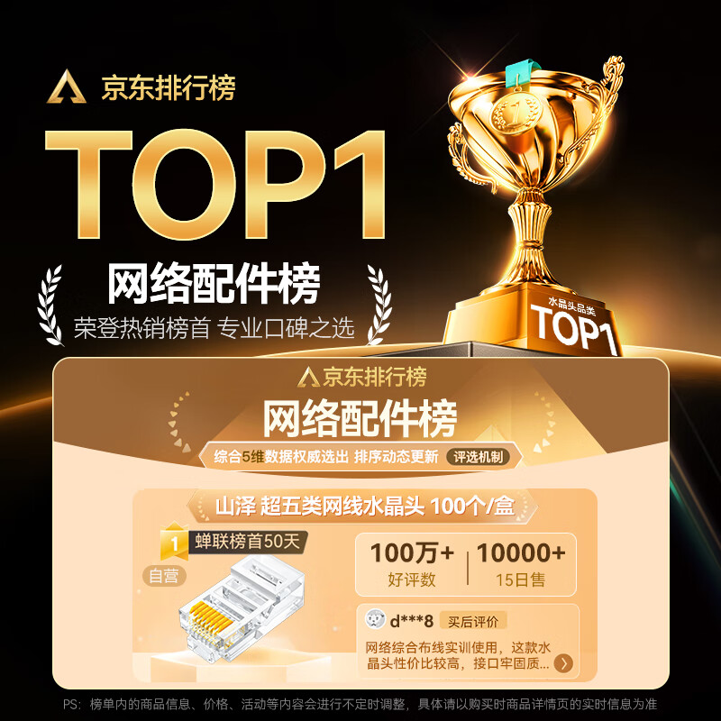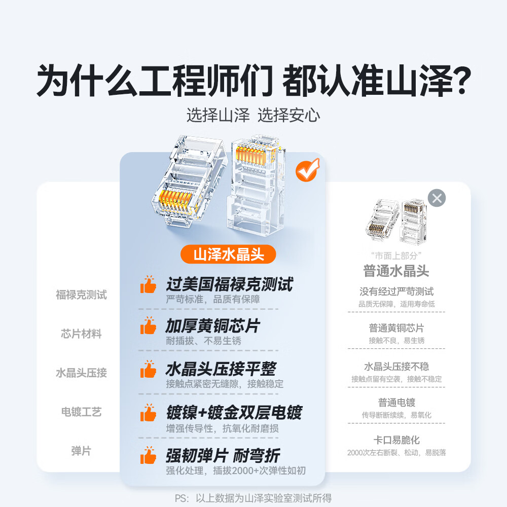 山泽超五类网线水晶头,仅需 22.9 元!