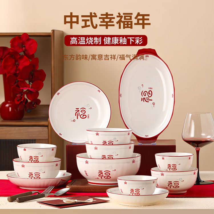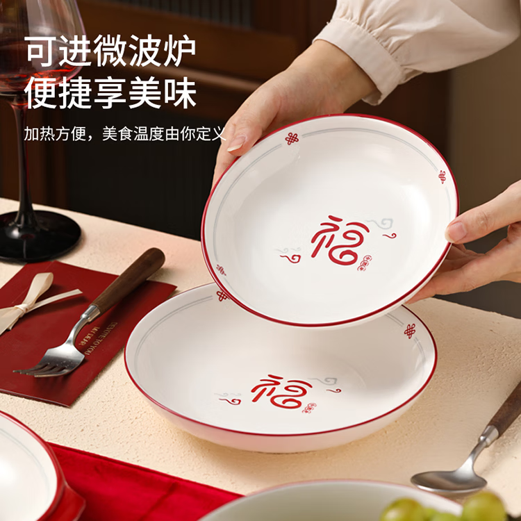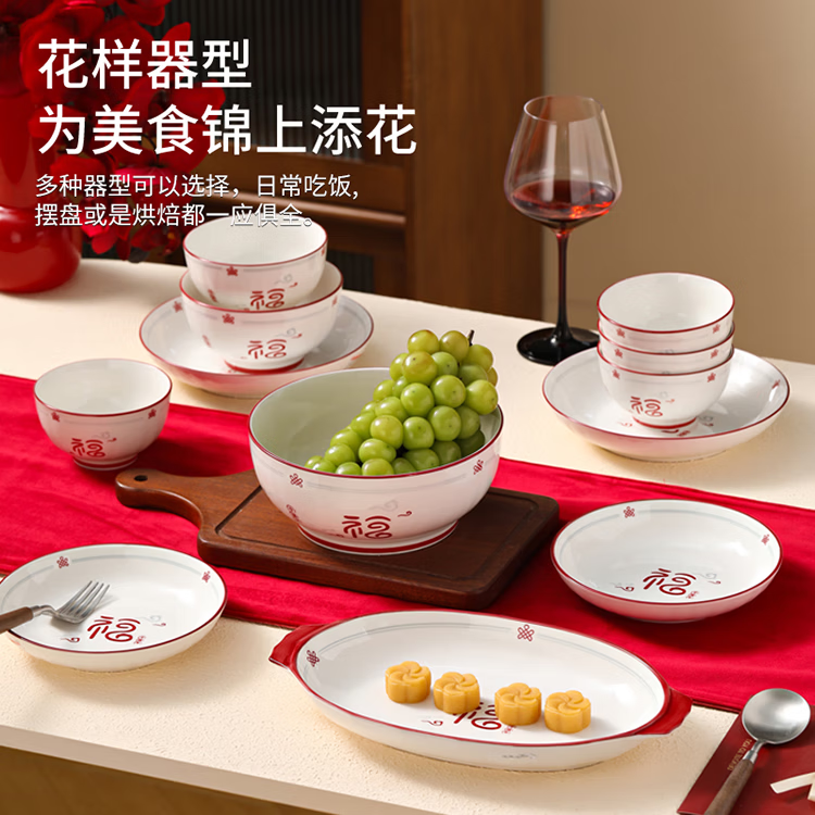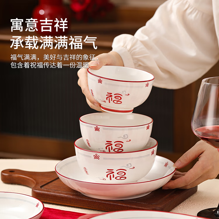 福气多多家用中式陶瓷英寸餐具结婚乔迁过年送礼佳品
