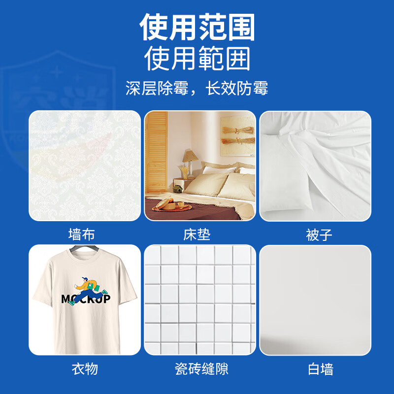 - 高效清洁去霉斑霉点:独特的配方能够快速分解并清除顽固霉斑。