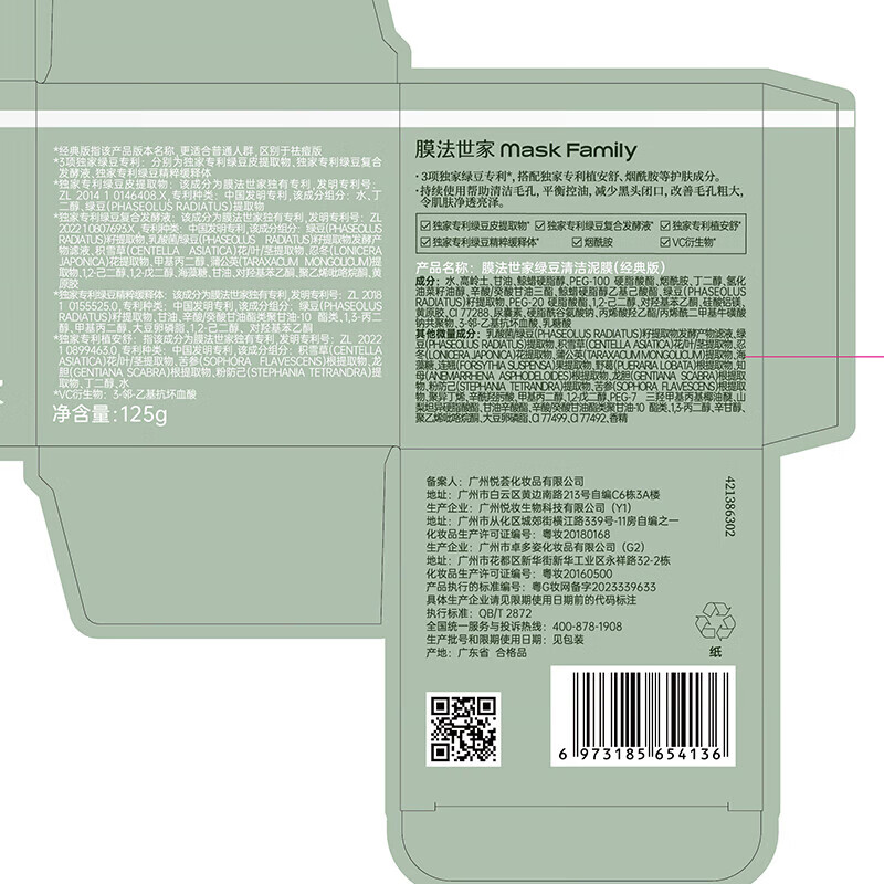 - 产品特色:采用高品质绿豆成分和烟酰胺配方,能深层清洁毛孔、控油去黑头,并提亮肤色。