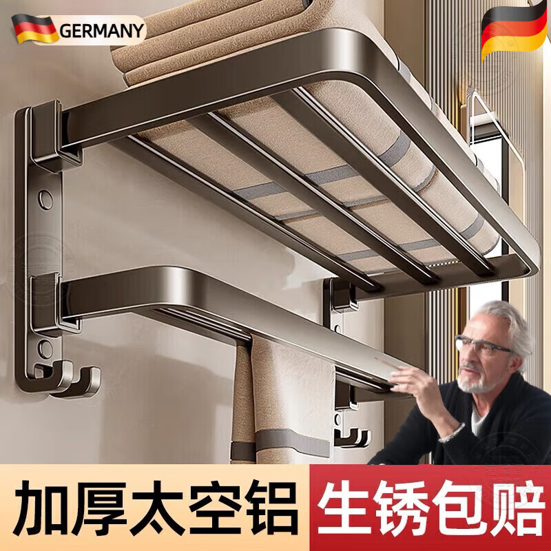 KDISV德国卫生间置物架浴室毛巾架 墙上免打孔挂架收纳厕所洗手间浴巾架【2件套B】枪灰色60cm升级款 【匠心工艺-升级加厚加粗-强力承重】