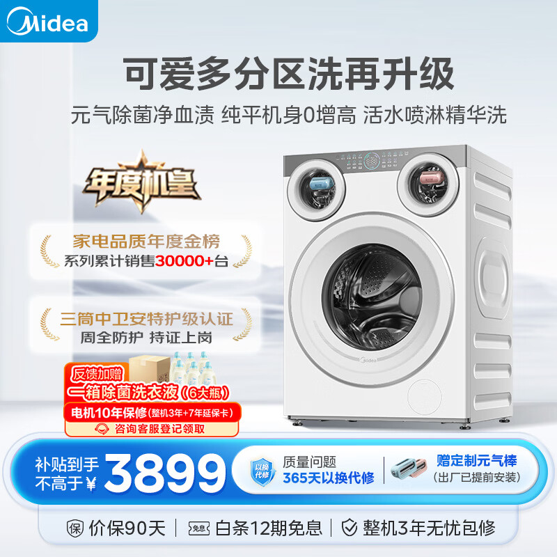 美的(Midea)可爱多滚筒洗衣机全自动滚筒单洗 11KG三筒内衣洗,仅售4587元