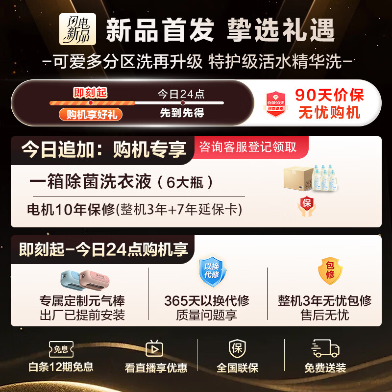 此外,产品享有国家补贴政策支持,最高可达15%的折扣。购买此款洗衣机还能享受京东自营服务保障:七天无理由退货以及PLUS会员专享特权。
