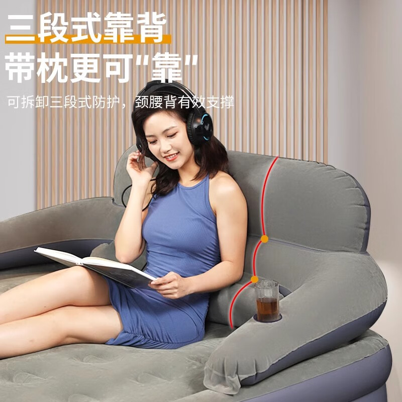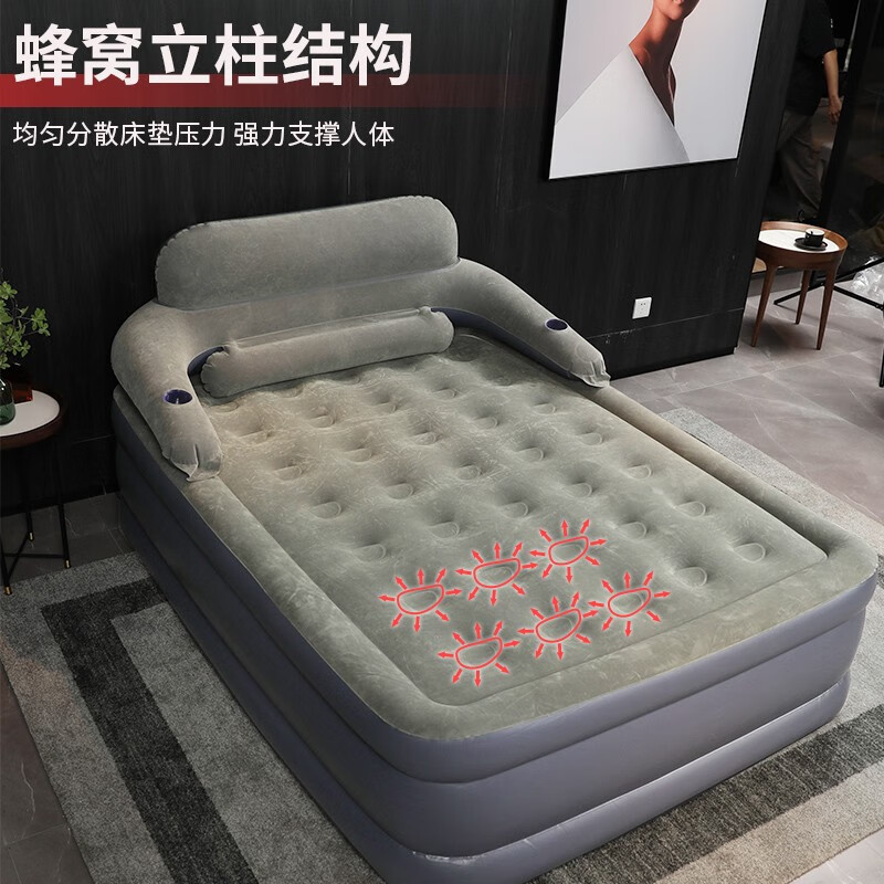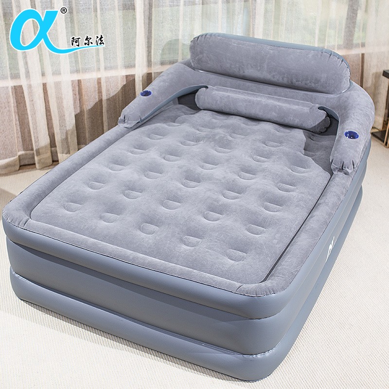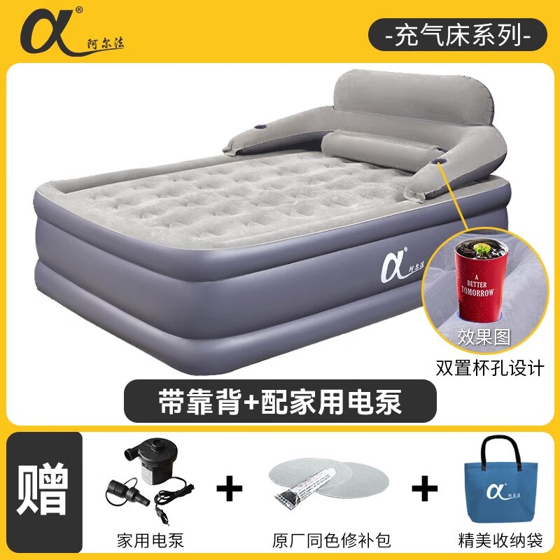 阿尔法三层充气床垫家用气垫床加高加厚冲气床电动充气简易折叠打地铺床,带靠背+家用电泵【连接家用电源充放气】 长203宽152高52cm