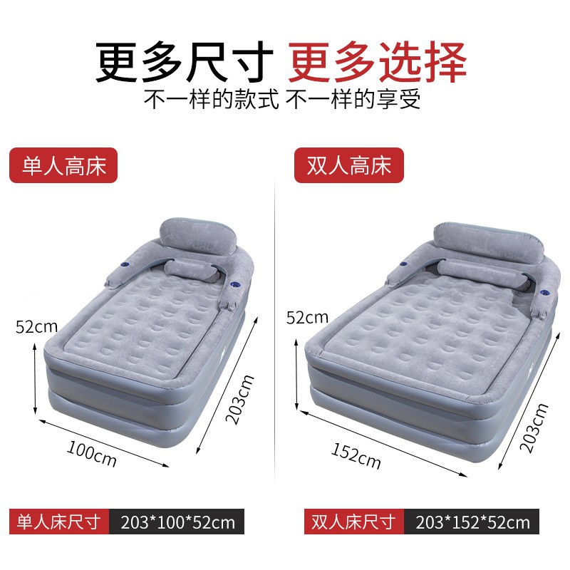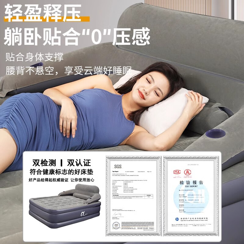 - 产品名称: 阿尔法三层充气床垫家用气垫床加高加厚冲气床电动充气简易折叠打地铺床 带靠背+家用电泵【连接家用电源充放气】 长203宽152高52cm