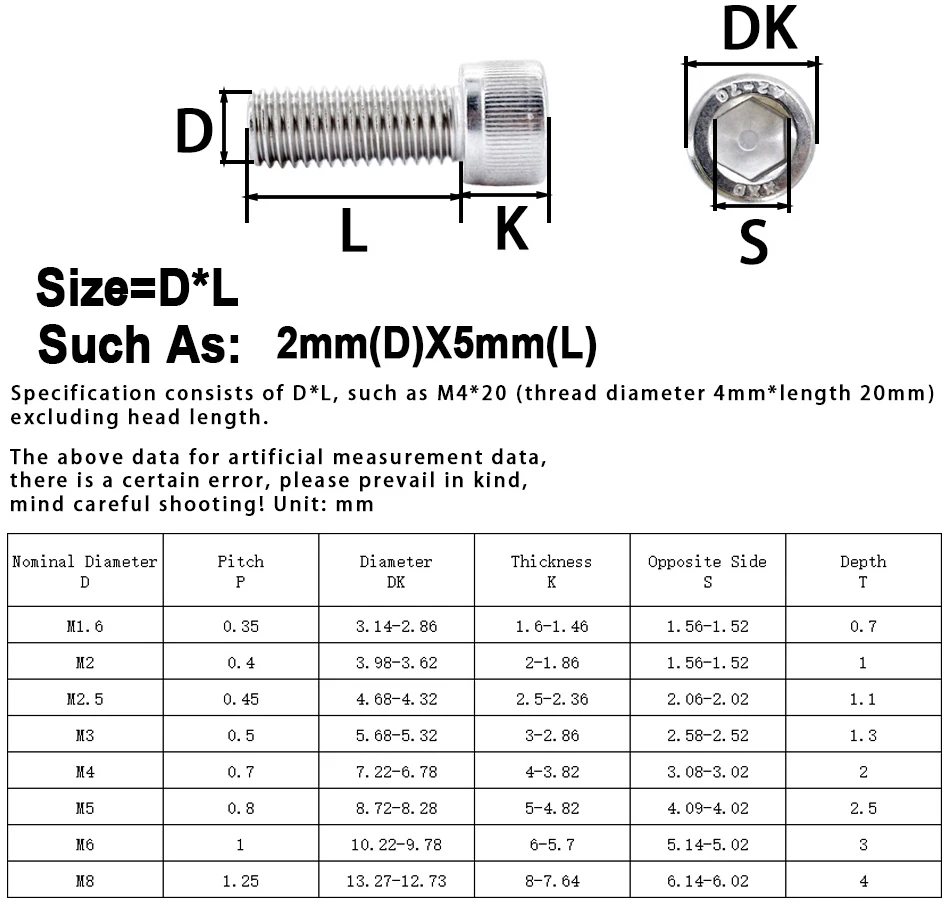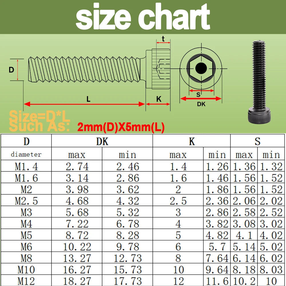 - Thread Size: Available in a variety of sizes including M1.6, M2, M2.5, M3, M4, M5, M6, and M8 to fit your needs perfectly.