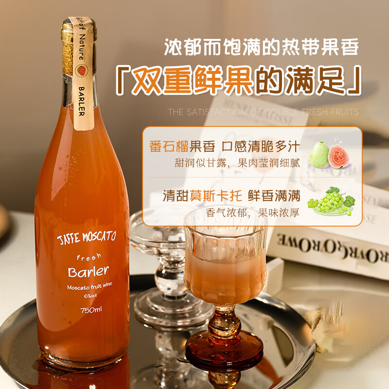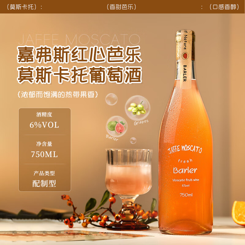 嘉弗斯红心芭乐莫斯卡托甜白葡萄酒6度微醺晚安果酒 仅37.9元