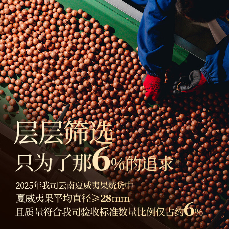- 夏威夷果口味纯正、饱满,口感香脆。