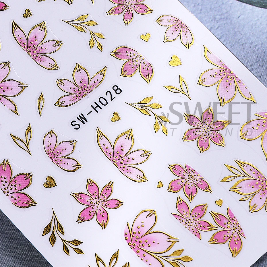 Transform your nails into a work of art with our beautiful Golden Pink Hibiscus Flower Nail Stickers! These stunning nail decals offer an easy and elegant way to enhance any manicure or pedicure. Each set includes either 2 or 3 pieces, featuring intricate hibiscus flowers in a striking golden pink hue, complete with bronzing borders and delicate Sakura line sliders.