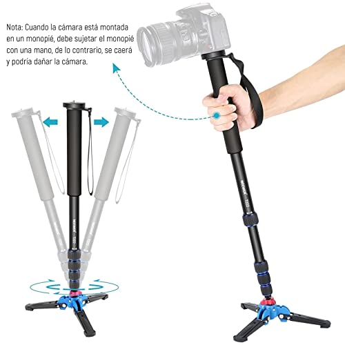 - Expandable Monopod: Extends up to 66 inches / 168 centimeters, folding down to 20.5 inches / 52 centimeters.