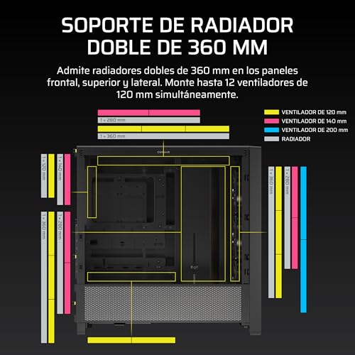 - High-performance cooling: Pre-installed CORSAIR RS ARGB PWM fans provide efficient airflow and near-silent operation at low loads.